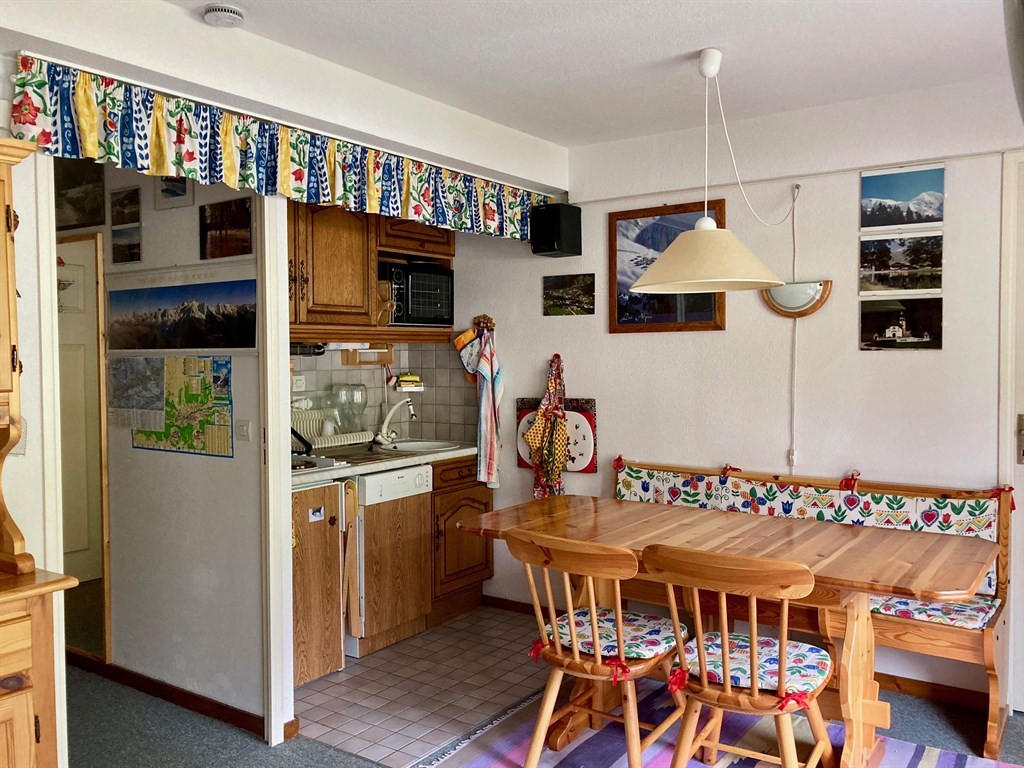 In una graziosa località sciistica a 1.200 mt. di altitudine, APPARTAMENTO 5-6 posti letto, in chalet di montagna con vista panoramica sul Dôme de Miage - Monte Bianco.