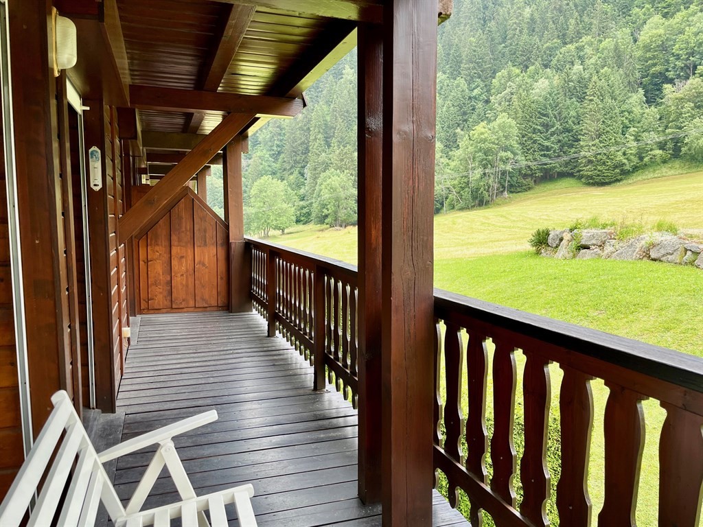 In una graziosa località sciistica a 1.200 mt. di altitudine, APPARTAMENTO 5-6 posti letto, in chalet di montagna con vista panoramica sul Dôme de Miage - Monte Bianco.