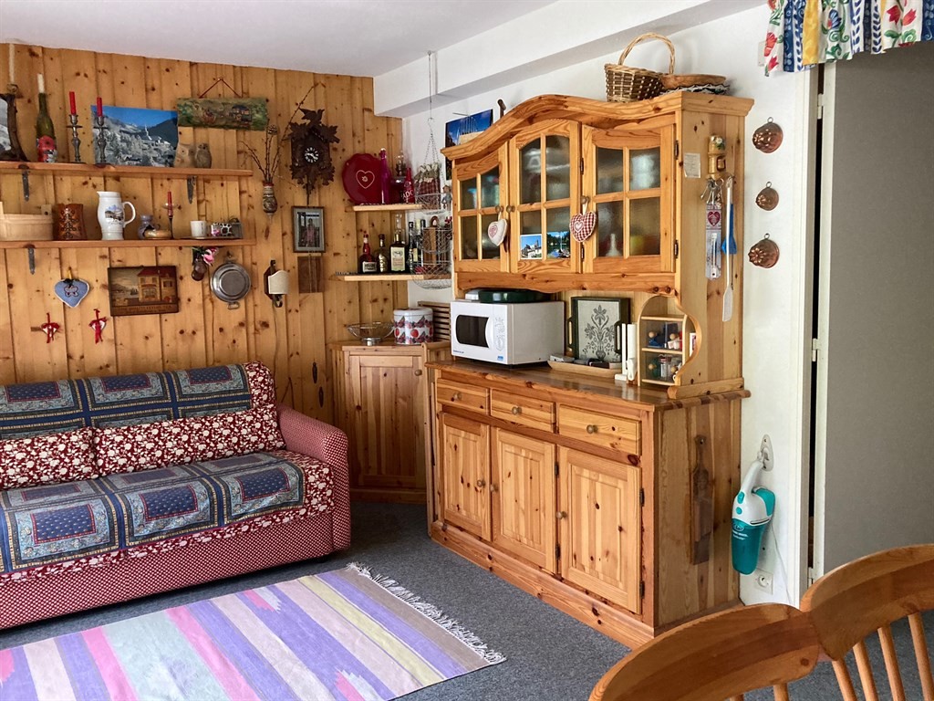 Al primo piano senza ascensore, si compone di zona giorno con divano letto e angolo cottura - ampiamente finestrata con vista panoramica e accesso al terrazzo - camera matrimoniale con 2 posti letto, cameretta con 1-2 posti letto, bagno con doccia, bidet e lavatrice, locale wc separato, ampio balcone coperto con vista rilassante su prati, boschi e cime innevate. Tutti i locali sono finestrati.